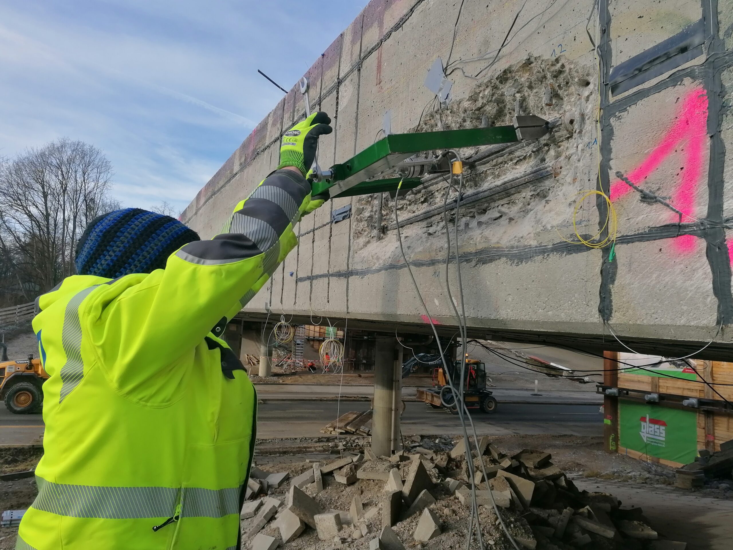 Wir entwickeln maßgeschneiderte Monitoringkonzepte und setzen diese für unterschiedlichste Bauwerke um – zum Beispiel für Brücken, die besonders gefährdet für Spannungsrisskorrosion sind, oder für Koppelfugen von Spannbetonbauwerken. Dabei nutzen wir neben konventioneller Messtechnik auch modernste Techniken wie faseroptische Sensoren und Schallemissionsanalyse, um Belastungen, Rissentwicklungen und potenzielle Schäden kontinuierlich und hochpräzise zu überwachen. Die Umsetzung erfolgt in enger Kooperation mit kompetenten Fachfirmen, Partnern aus der Industrie oder auch der Technischen Universität München, wodurch neueste wissenschaftliche Erkenntnisse und innovative Methoden direkt in die Praxis einfließen.