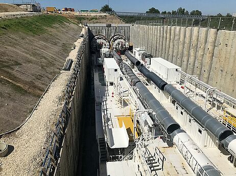 - TVM-Vortrieb unter der Autobahn mit geringer Überdeckung von ca. 10,0 m