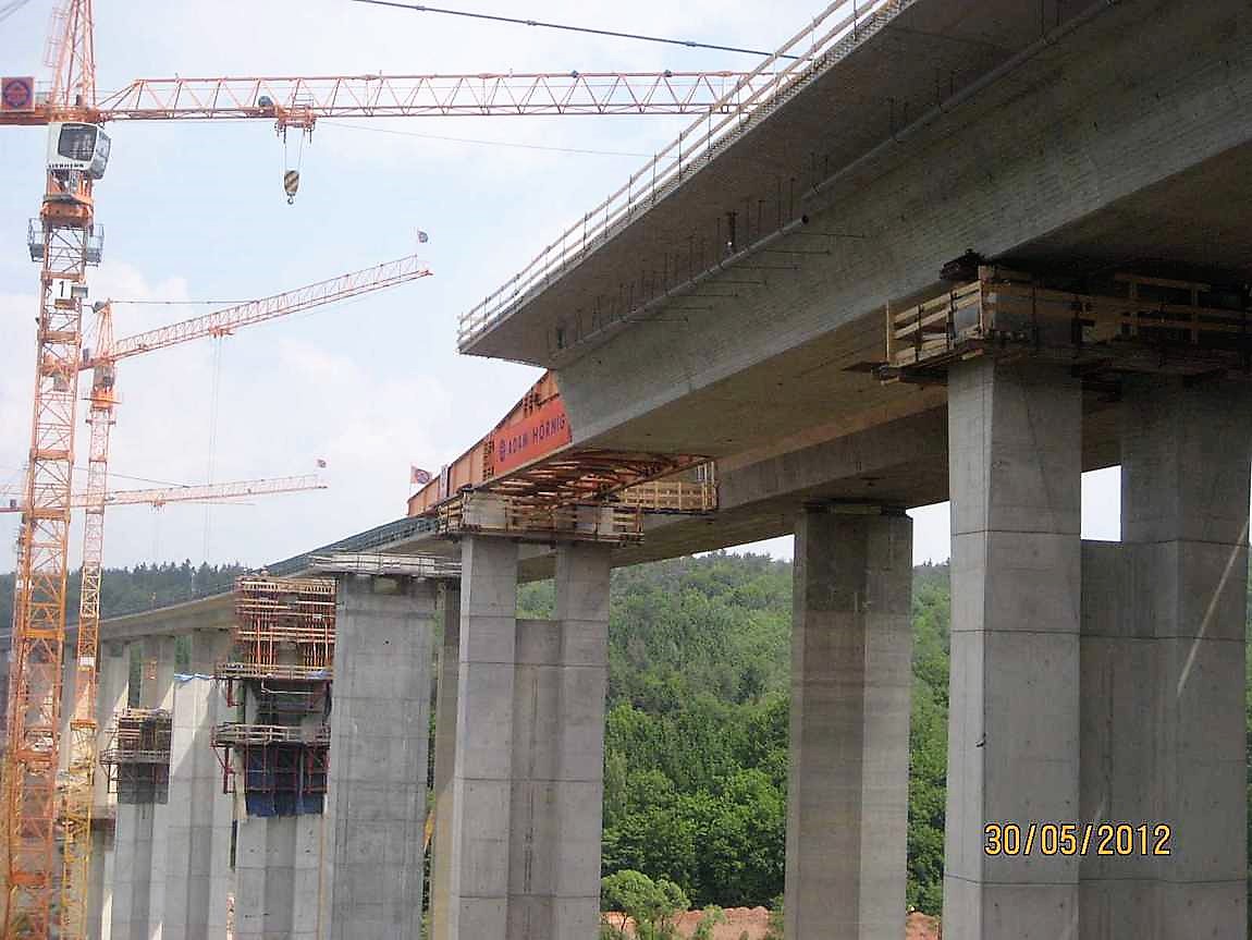 - Querverschub des 46,40 m hohen Hilfspfeilers sowohl für den Rückbau als auch für den Ersatzneubau der zweiten Richtungsfahrbahn