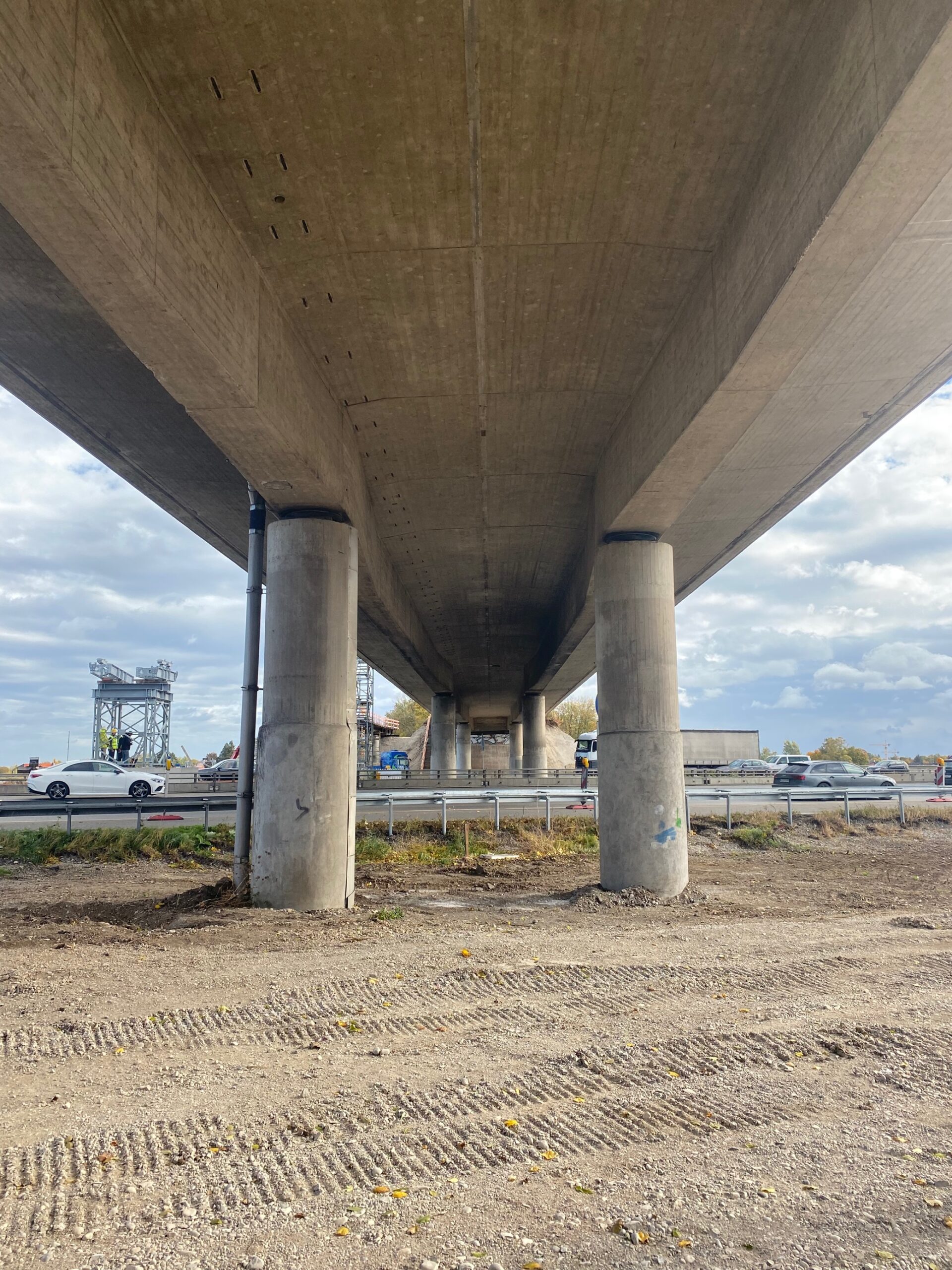 Der Ersatzneubau wird zur Sicherstellung des Lichtraumprofils der Autobahn um 1,15 m überhöht auf Traggerüst hergestellt.