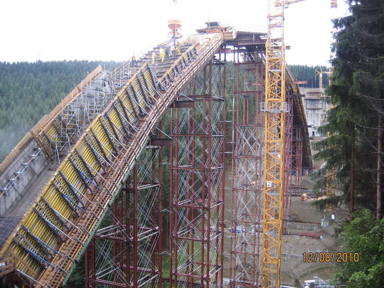 - Abschnittsweiser Aufbau des Tragerüsts und Beginn der Bogenherstellung vor Scheitelschluss des Traggerüsts