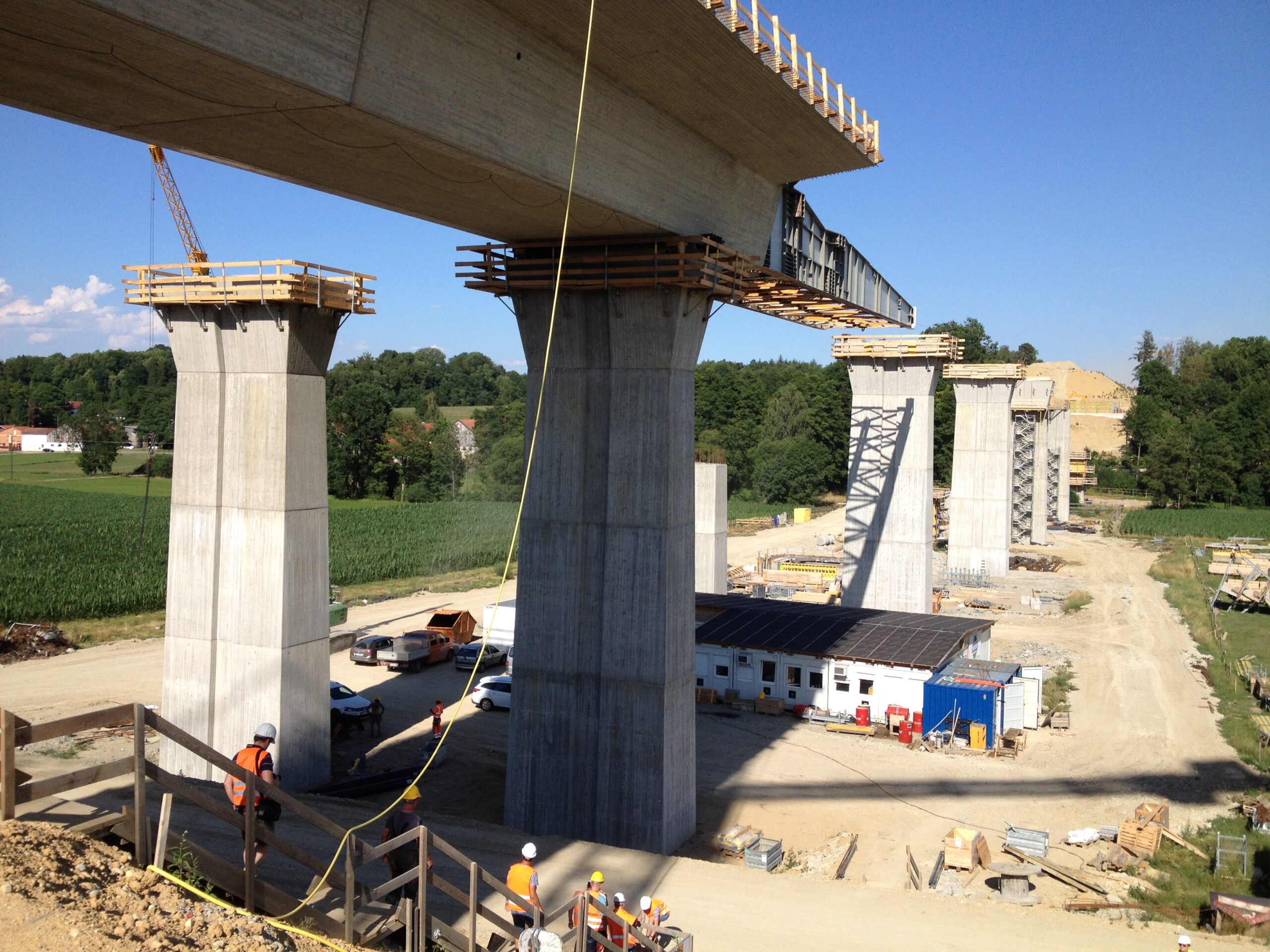 Die massiven Widerlager und die bis ca. 35 m hohen Pfeiler sind mittels Großbohrpfählen tief gegründet.