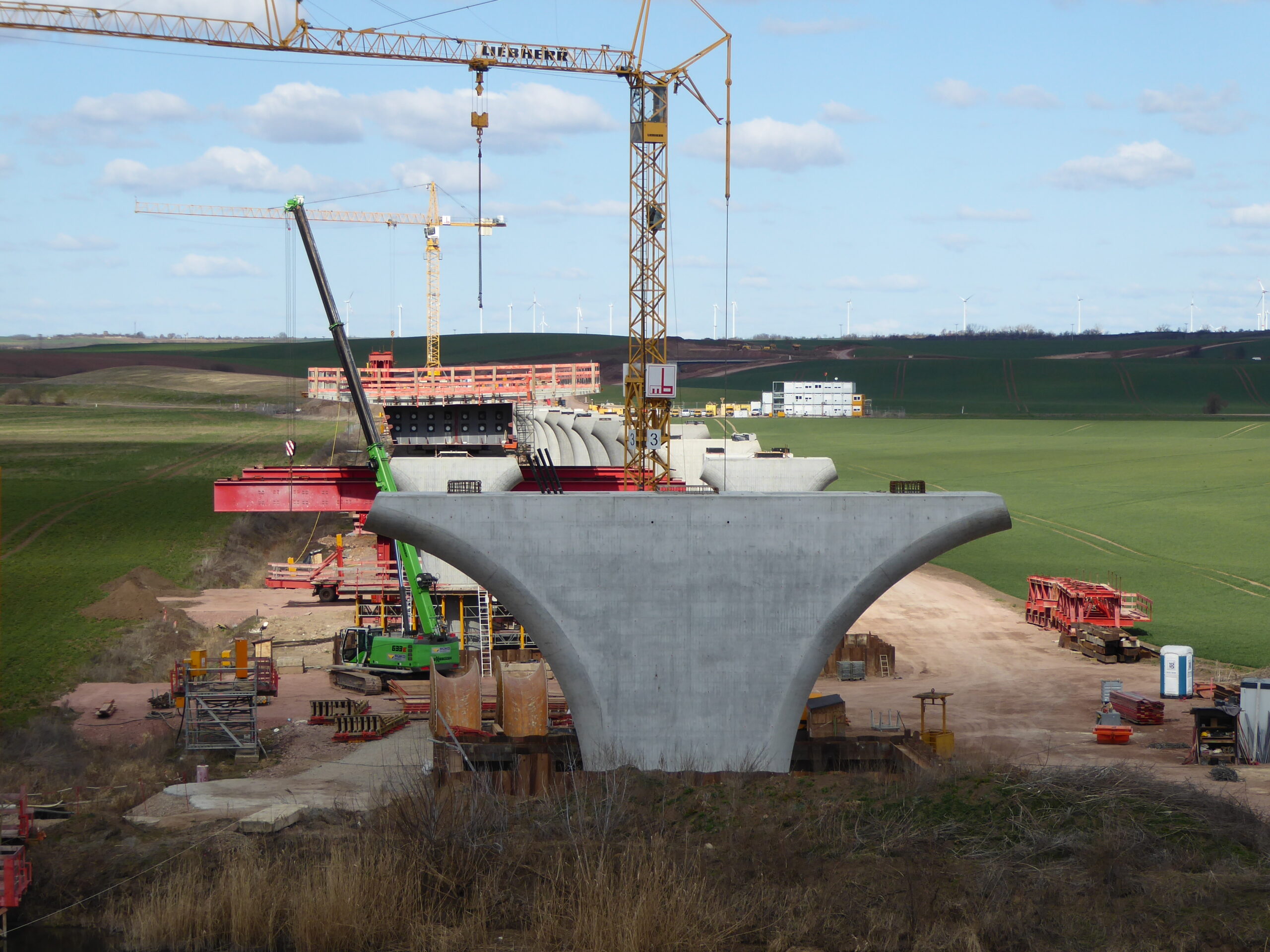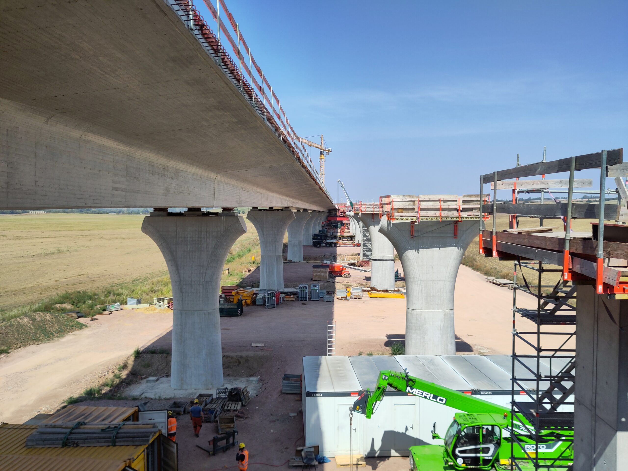 einer Orthoverbund-Fahrbahnplatte. Die Überbauten der Vorlandbrücke haben jeweils zweistegige Plattenbalkenquerschnitte.